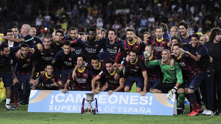 Después de la recaida de "Tito" Vilanova (qepd) de su enfermedad. El club decidió sustituirle con un técnico argentino, Gerardo "Tata" Martino, que llegaba con la dificil misión de intentar llevar la nave blaugrana. El único título que consiguió fue la Supercopa de España, ante el Atletico de Madrid, que había ganado la anterior temporada la Copa de España. El equipo blaugrana partía con la ventaja del empate en el Calderón. El Barça se proclamó campeón gracias al valor doble de los goles en campo contrario. El equipo se mostró más terrenal que nunca, y acabó pidiendo la hora ante un rival que le tuvo literalmente contra las cuerdas. La tan anhelada titularidad del tándem Neymar-Messi no respondió a las expectativas, pues ninguno de los dos tuvo la frescura que se esperaba para desequilibrar, inquietar ni marcar. Es más, el argentino falló incluso un penalti en el 87'. No fueron los únicos, sino la tónica general. Pese al título, el doble enfrentamiento con los madrileños deja más dudas que sombras en el Camp Nou del equipo entrenado por el "Tata", que debió ser cesado y otro gallo habría cantado